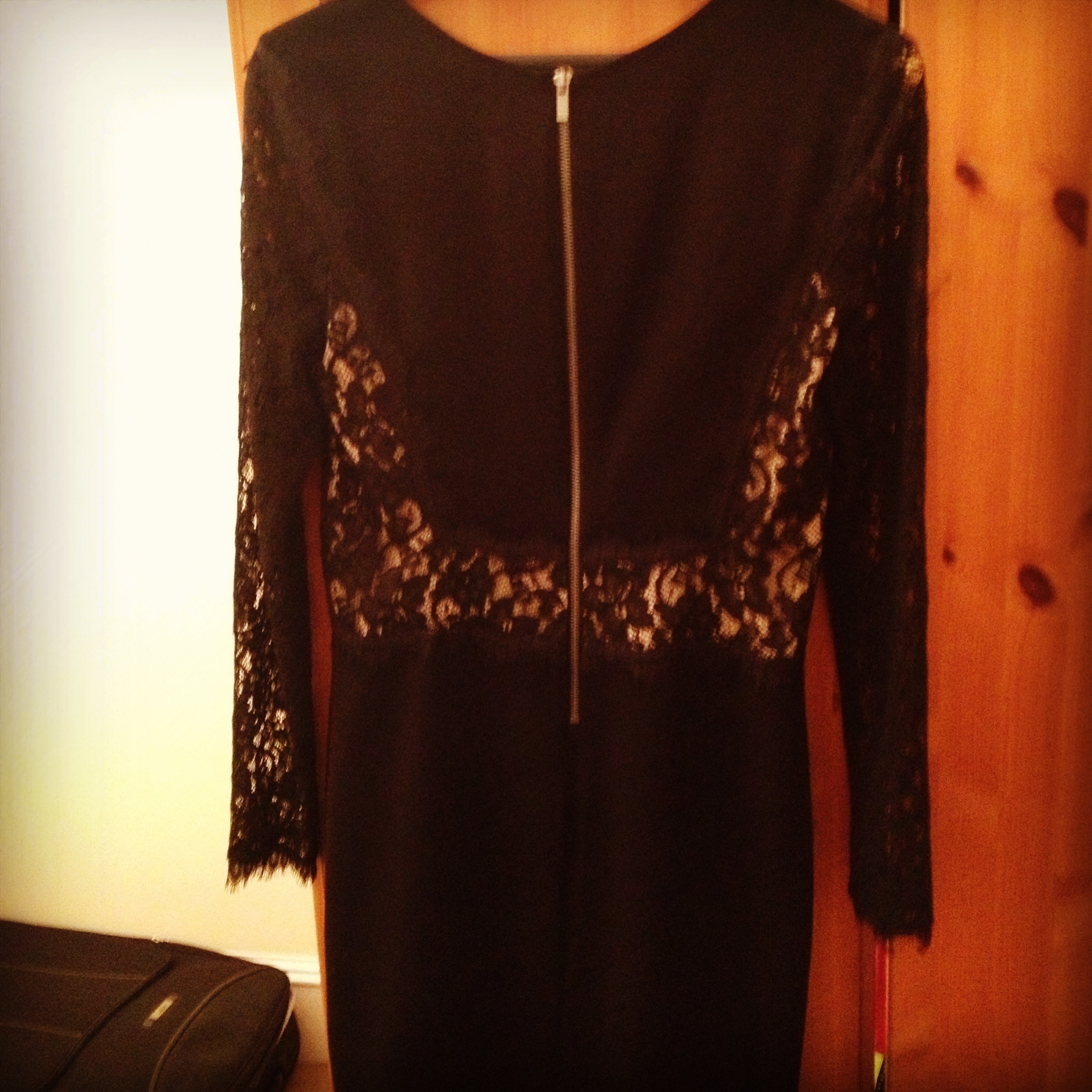 The quality and fit of the material was akin to a glove and the curve flattering body con nude lace panels and long lace sleeves are genius for providing lumps and bumps in all the right places. Blinking lovely!!!