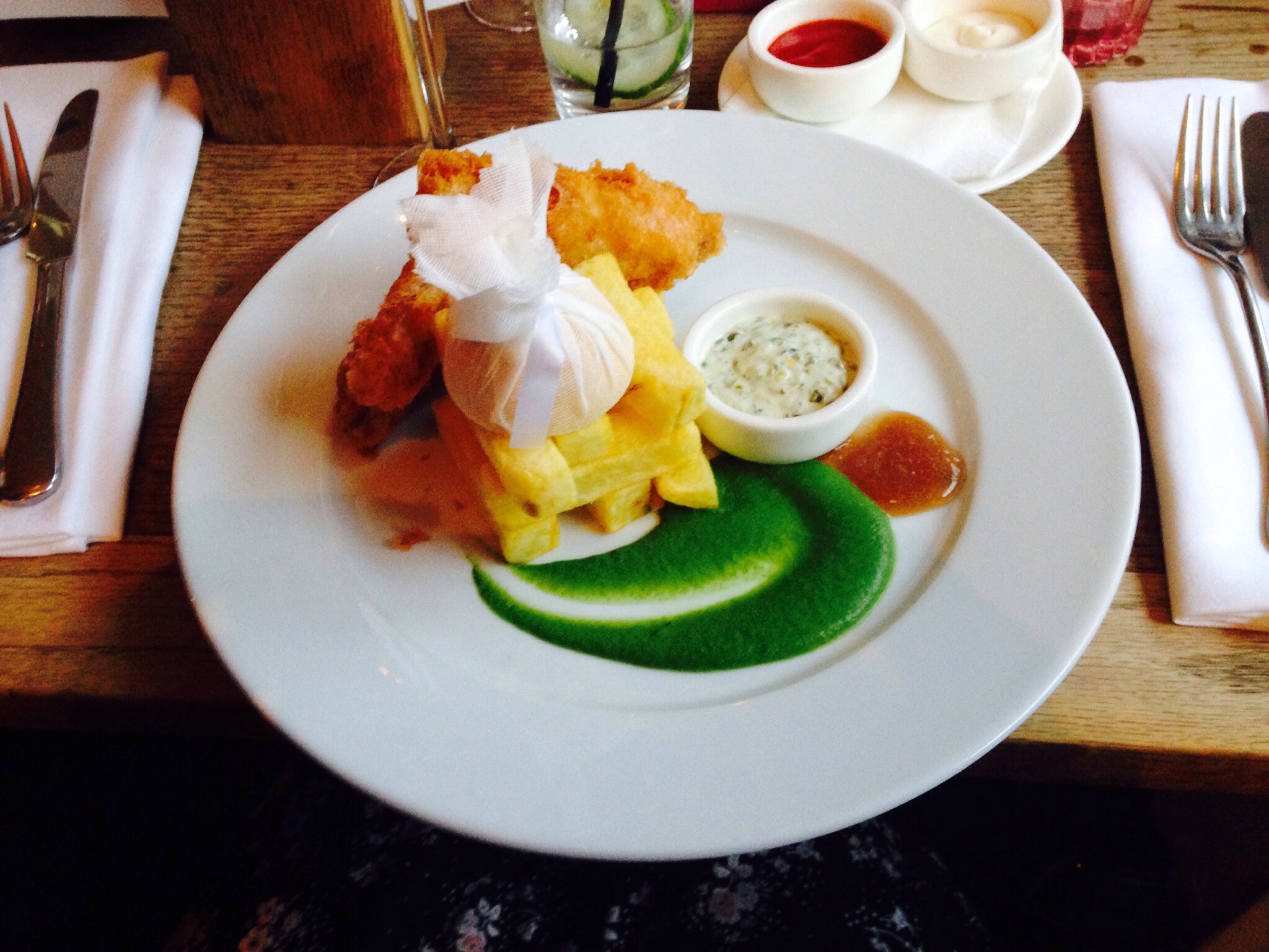 The beer battered fish and chips came as three fillets with tartare sauce, mushy peas and a smear of sarasons malt vinegar sauce. The icing on the cake was a lemon wrapped in muslin cloth. To catch the pippage, dahling! Only in Belgravia! The fish was lovely and light and whilst the tartare sauce and mushy peas were to-die-for, the malt vinegar sauce was the star accompaniment. I guess a posh equivalent of Edinburgh chippy sauce. The cost of this fish supper was £13.50.