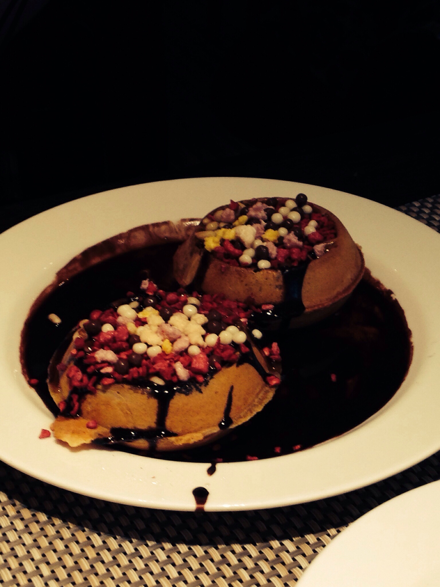 Although you could hit it hard in any old order, I think that the intention was that we would start with the breakfast section, where there was an “eggs any which way” chef and pancakes, waffles and all the sticky sweet sauce and sprinkle you could ever dream of.