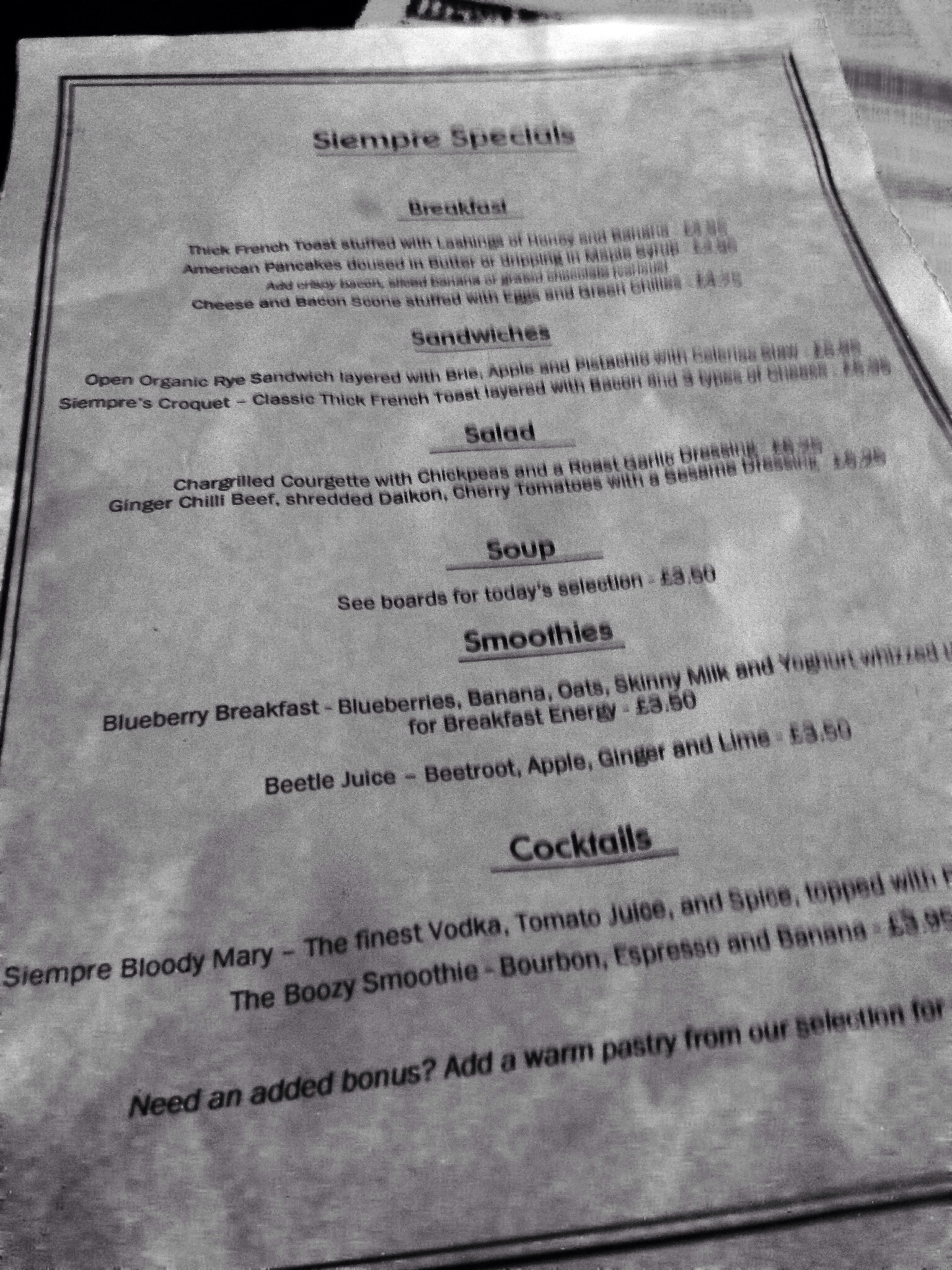 In what felt like the first in a long time for me in a cafe, Siempre’s lunch menu really excited me.