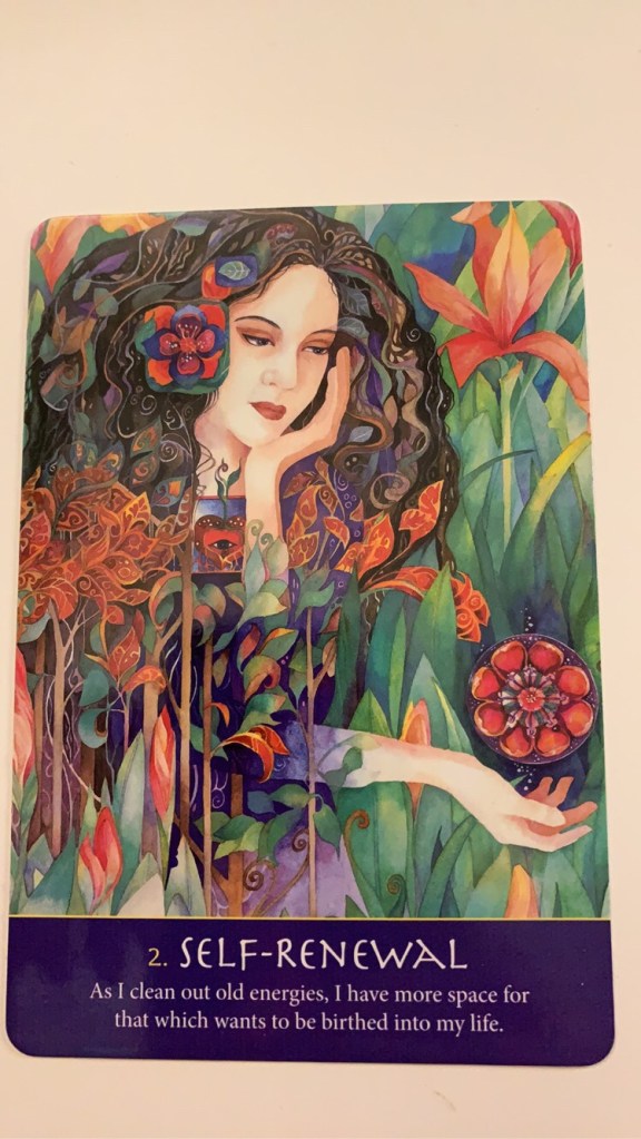 At the end of the meditation group, our amazing hostess draws a card from a pack with a message for us. This might feel a bit woo-woo to some but you’d be amazed at how often the pick is just right for the speaker as they are right now. I have shared my card below, it couldn’t be more perfect for how I feel at the moment.